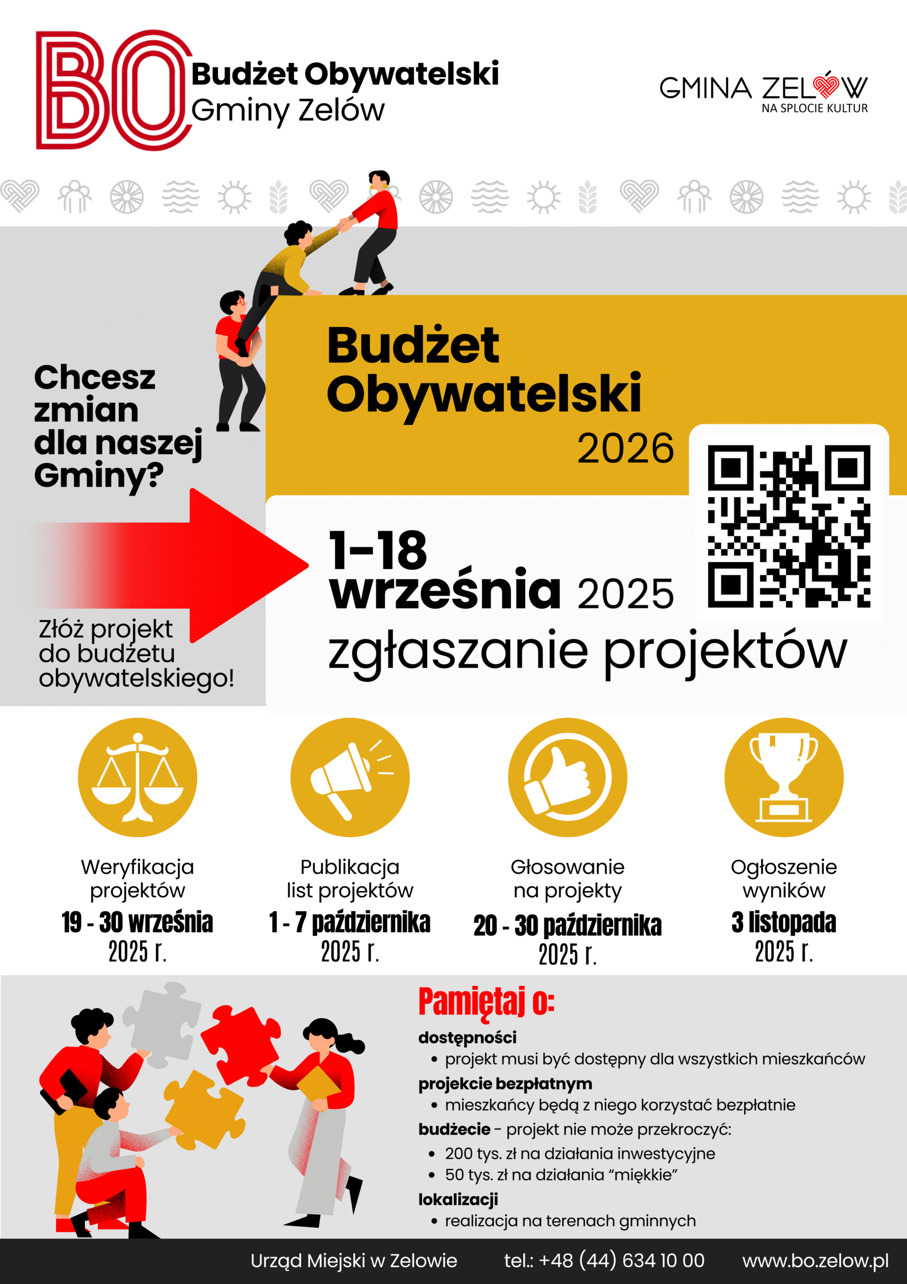 Chcesz zmian dla naszej gminy? Masz pomysł, który może poprawić życie mieszkańców? Teraz możesz go zrealizować! Rusza kolejna edycja Budżetu Obywatelskiego Gminy Zelów.