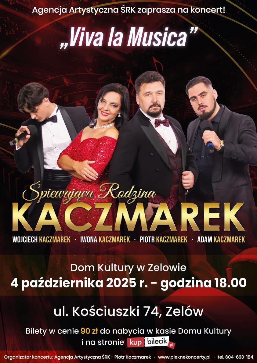 Już 4 października o godz. 18.00 w Domu Kultury w Zelowie odbędzie się wyjątkowy koncert – wystąpi Śpiewająca Rodzina Kaczmarków.