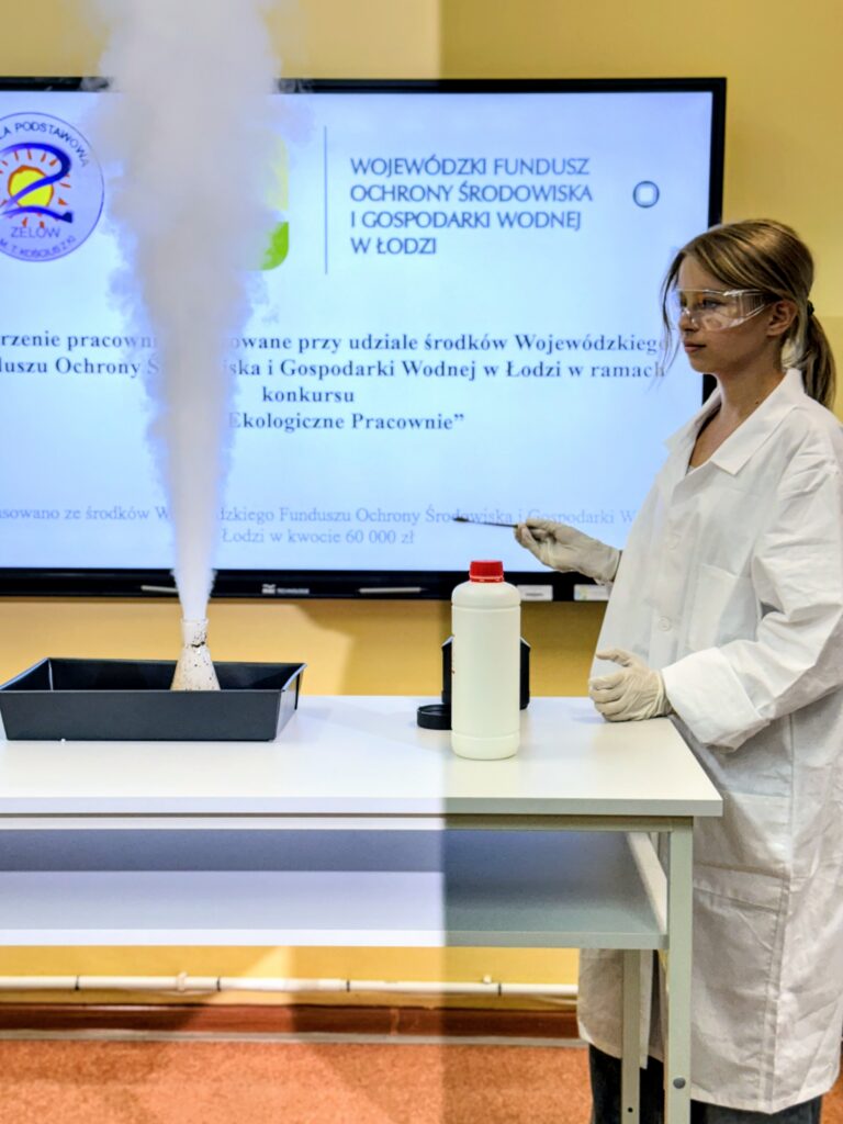 Inwestycja została zrealizowana wspólnie przez Wojewódzki Fundusz Ochrony Środowiska i Gospodarki Wodnej w Łodzi oraz Gminę Zelów. Uroczyste przecięcie wstęgi w drzwiach nowej pracowni stało się symbolicznym początkiem fascynującej podróży w świat nauki. Następnie nauczycielka chemii, p. Wioleta Jachimek, wraz z uczniami klasy VII, przygotowała efektowne doświadczenia: pasta dla słonia, parowóz, samozapłon i wiele innych, które zachwyciły wszystkich obecnych i pokazały, że chemia może być prawdziwie widowiskowa i inspirująca.