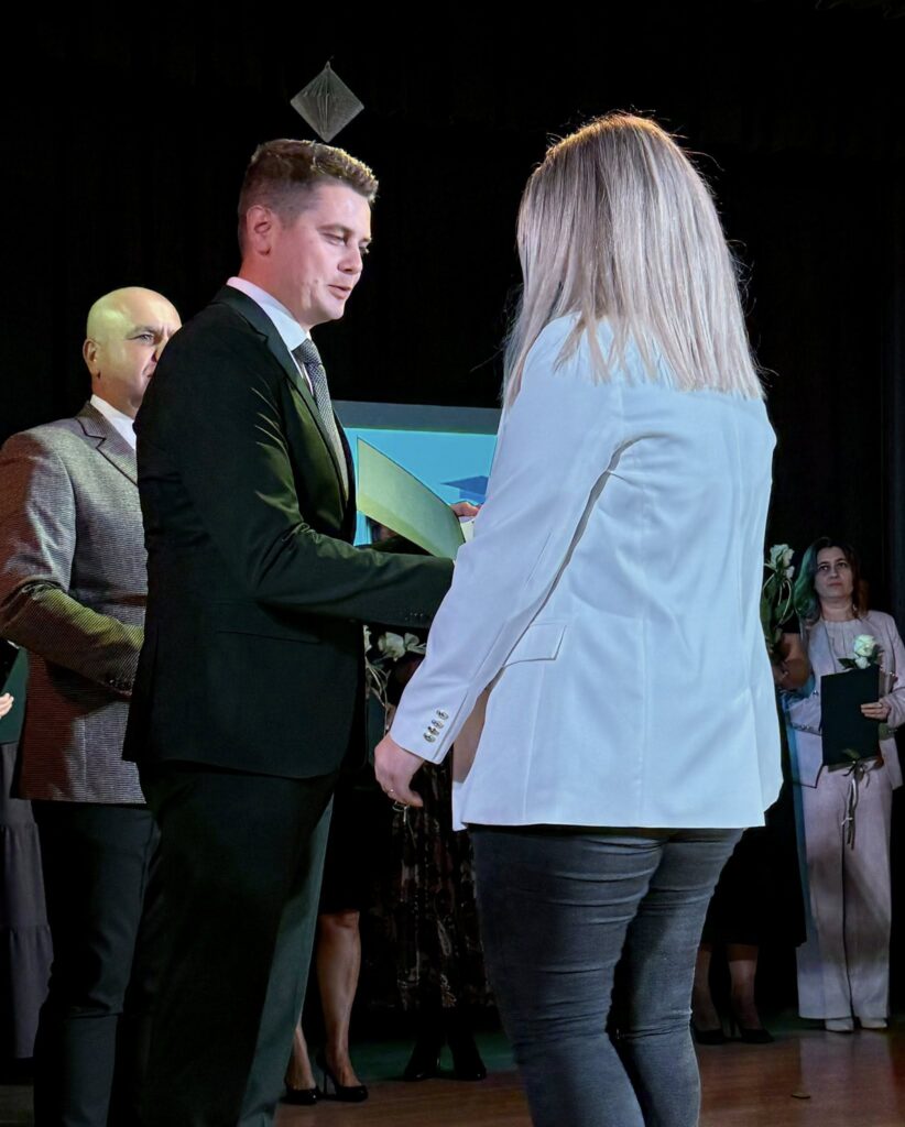 Podczas uroczystości Burmistrz Zelowa oraz Przewodniczący Rady Miejskiej w Zelowie wręczyli nagrody wyróżnionym nauczycielom – za zaangażowanie i pracę, która realnie wpływa na rozwój naszej gminy.