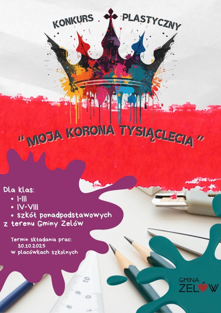 Z okazji obchodów tysiąclecia korony polskiej Gmina Zelów zaprasza uczniów szkół podstawowych i ponadpodstawowych do udziału w wyjątkowym konkursie plastycznym „Moja Korona Tysiąclecia”.