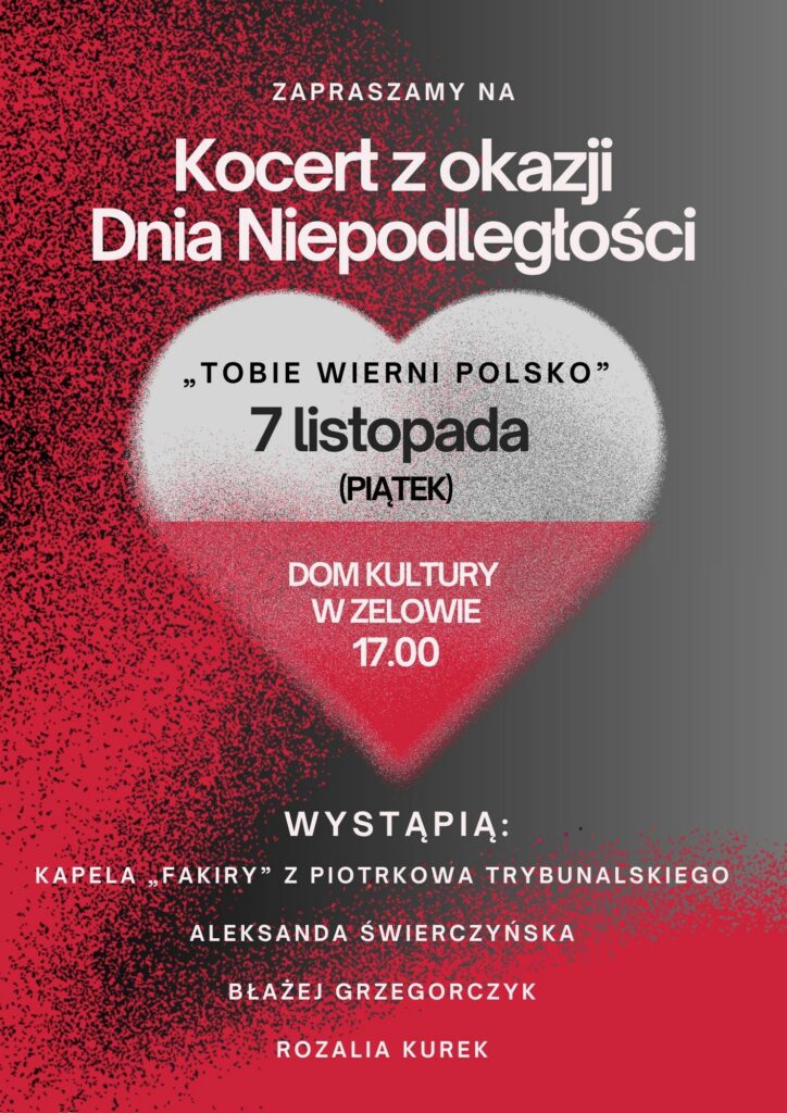 Dom Kultury w Zelowie serdecznie zaprasza na wyjątkowy Koncert z Okazji Dnia Niepodległości pod hasłem „TOBIE WIERNI POLSKO”.