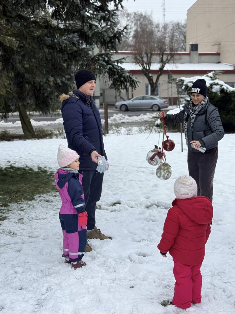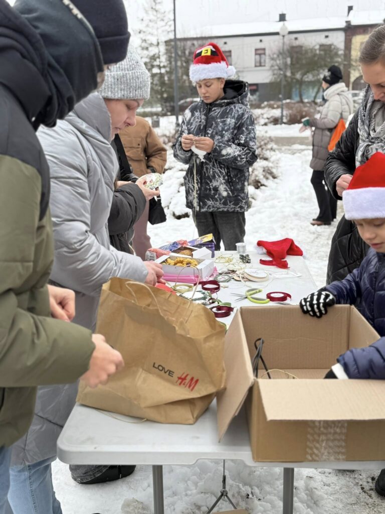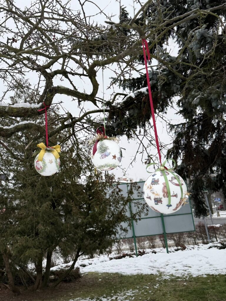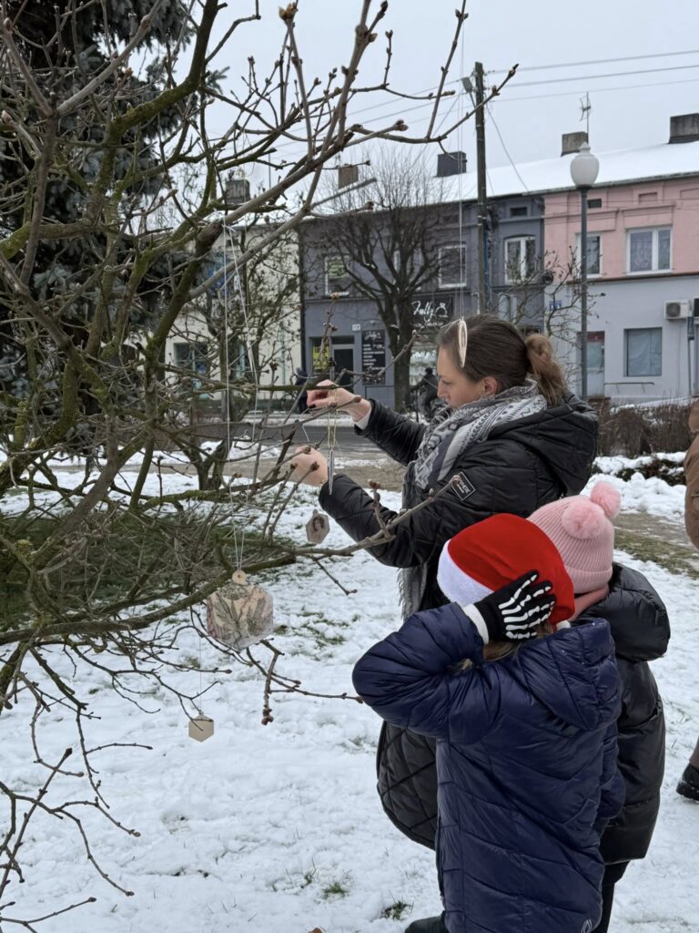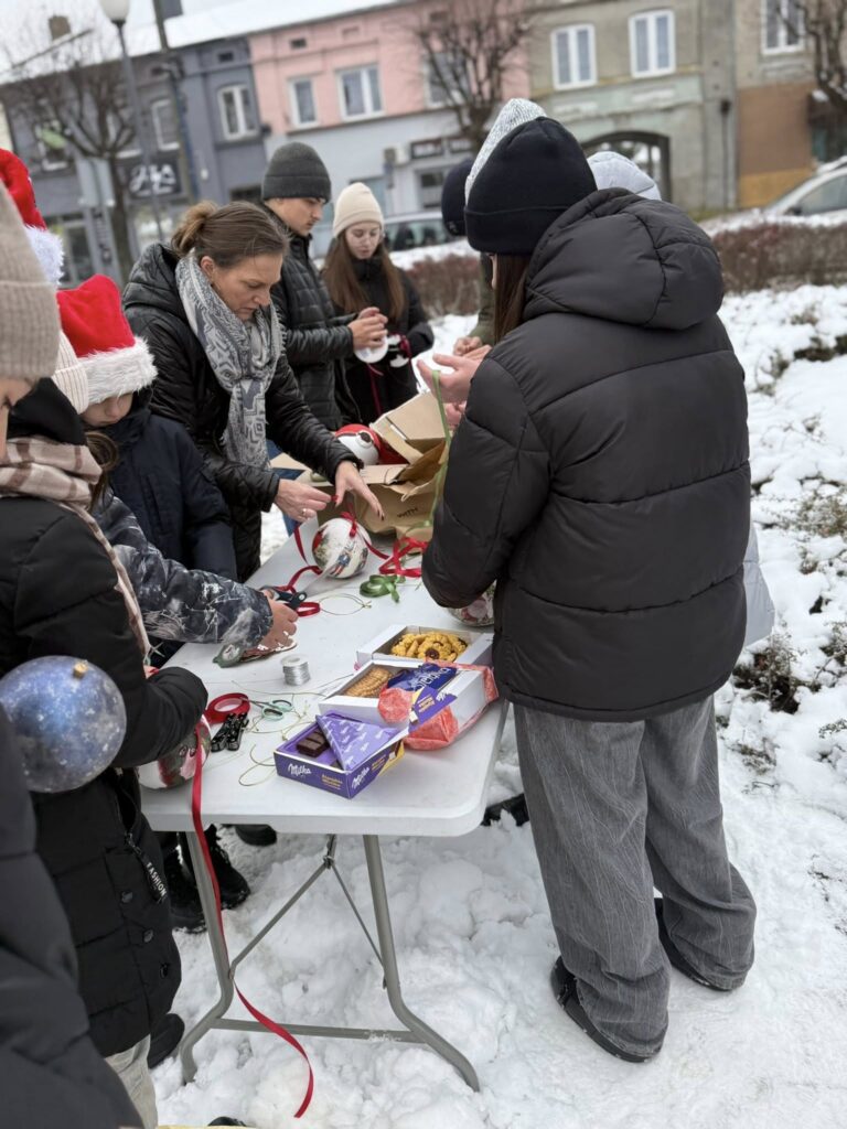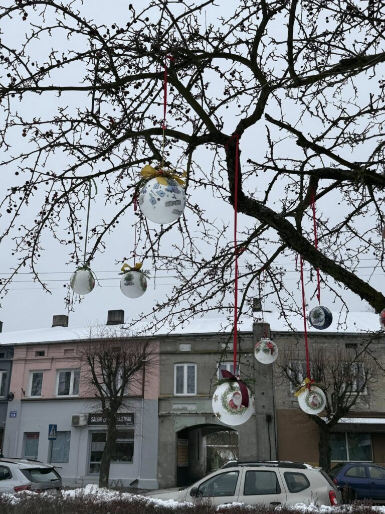 Dziś nadszedł czas na wielki finał. Na Placu Dąbrowskiego udekorowaliśmy drzewka ozdobami wykonanymi podczas wspomnianych warsztatów. Dołączyły do nich również dekoracje stworzone w Domu Kultury w Zelowie. Wspólny efekt zachwyca — drzewka prezentują się niezwykle okazale, wprowadzając w przestrzeń miasta prawdziwie świąteczną atmosferę.