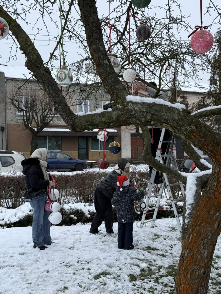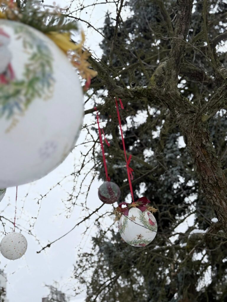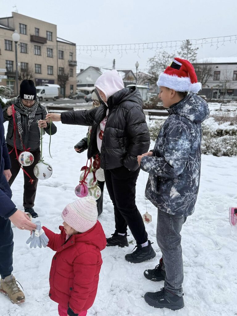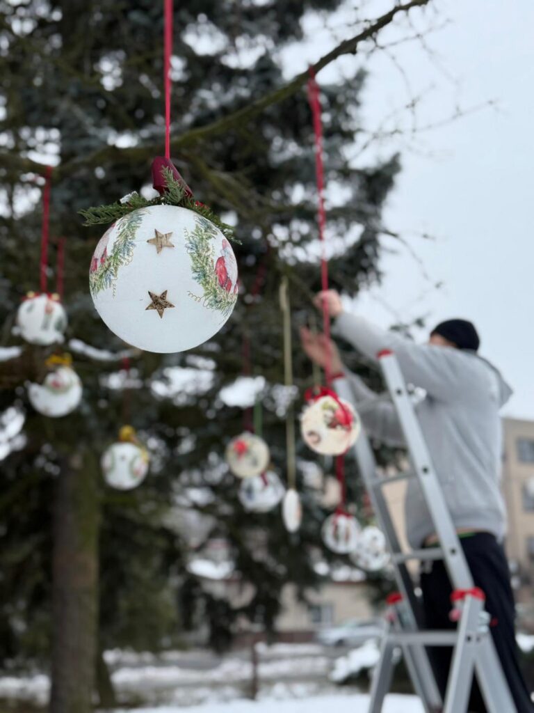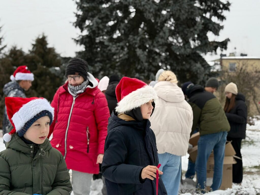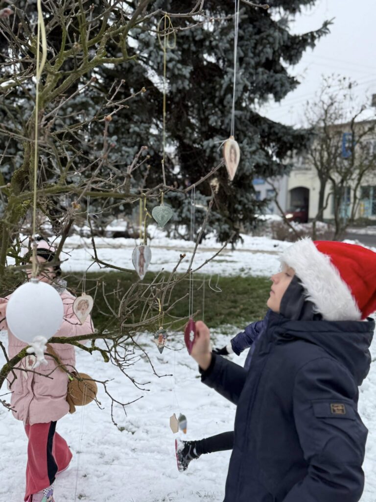 Dziś nadszedł czas na wielki finał. Na Placu Dąbrowskiego udekorowaliśmy drzewka ozdobami wykonanymi podczas wspomnianych warsztatów. Dołączyły do nich również dekoracje stworzone w Domu Kultury w Zelowie. Wspólny efekt zachwyca — drzewka prezentują się niezwykle okazale, wprowadzając w przestrzeń miasta prawdziwie świąteczną atmosferę.