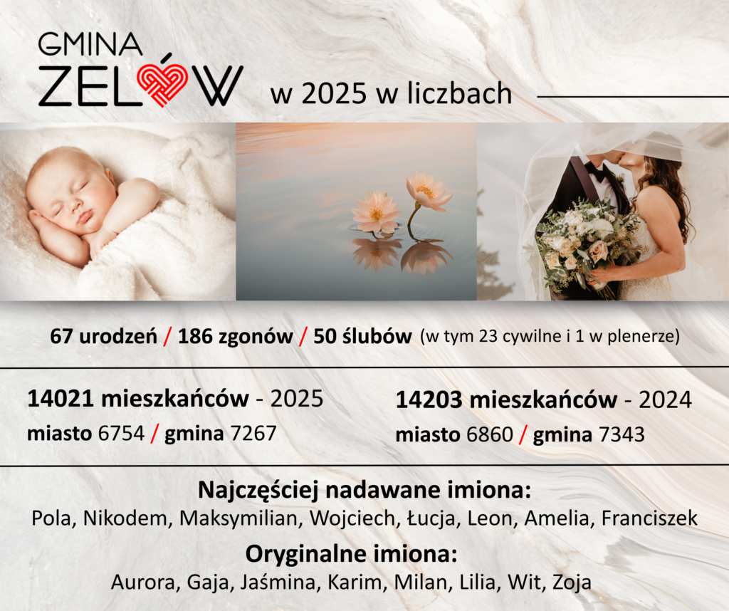 Gmina Zelów w liczbach – 2025 Autor: Monika Niedzielska 5 stycznia 2026 238 Views Demografia Gminy Zelów. Przedstawiamy podstawowe dane pokazujące, jak wyglądał 2025 rok w naszej gminie. Stan na 31.12.2025 r.