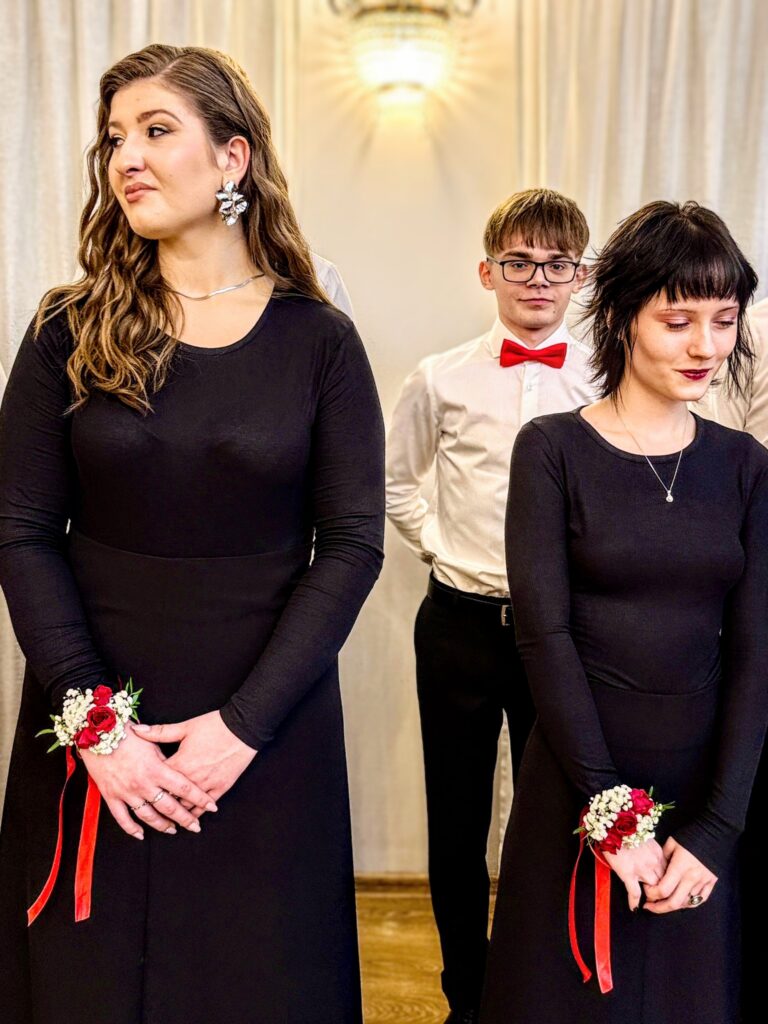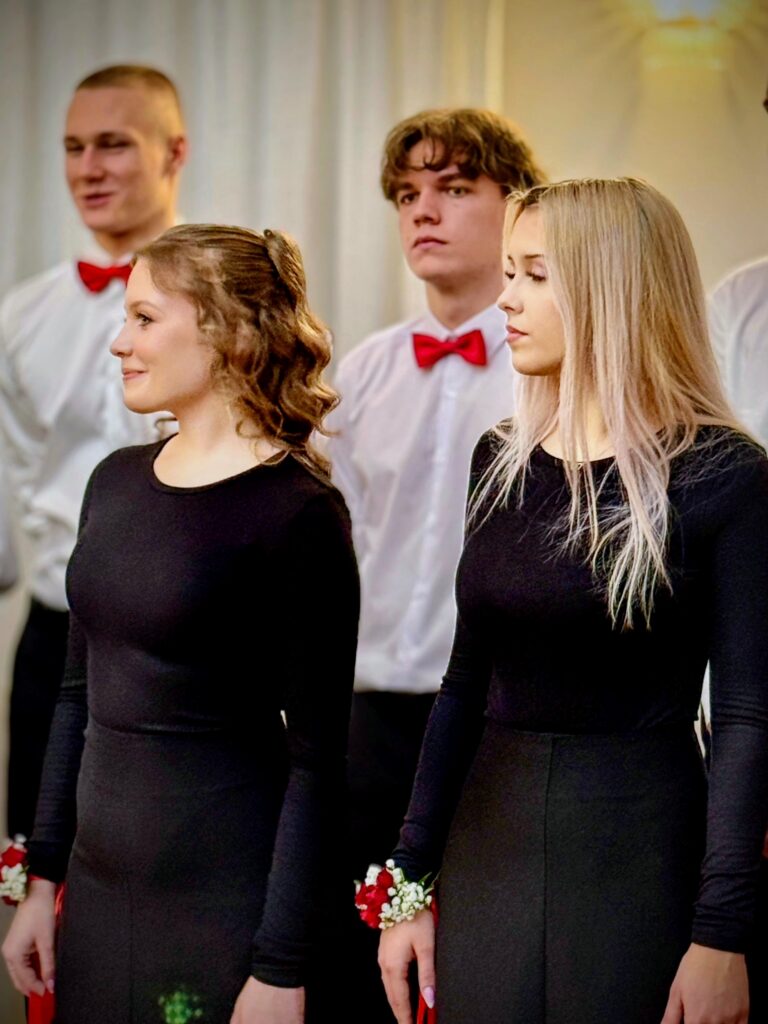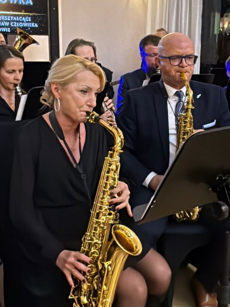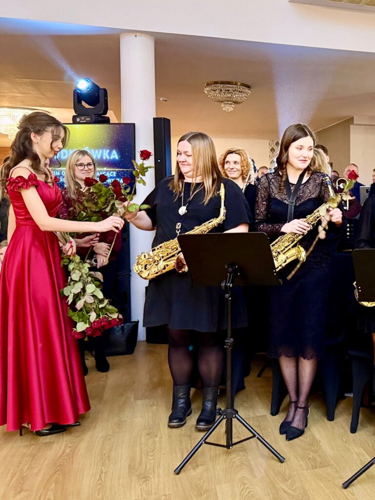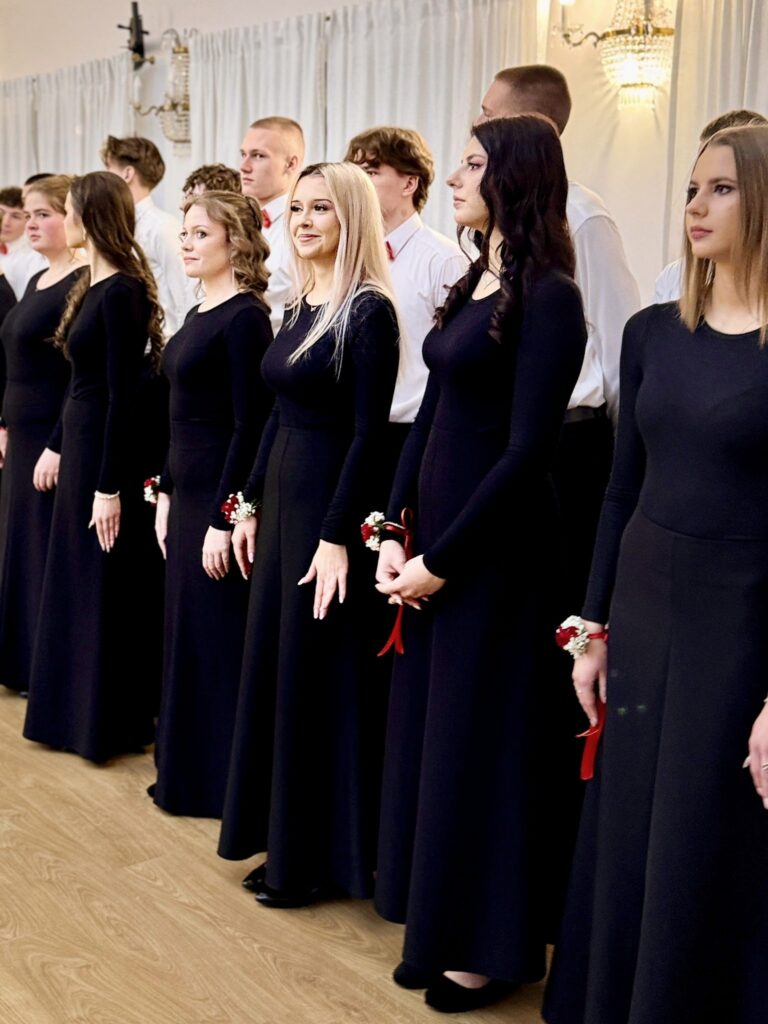 Uroczystość rozpoczęła się wyjątkowym polonezem, który maturzyści zatańczyli przy akompaniamencie Orkiestry Dętej Ochotniczej Straży Pożarnej w Zelowie. To historyczne wykonanie było dużym wyzwaniem organizacyjnym i artystycznym, jednak długie godziny prób przyniosły znakomity efekt, nagrodzony gromkimi brawami.