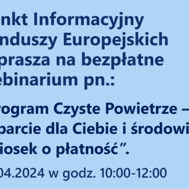 WięcejGłówny Punkt Informacyjny Funduszy Europejskich w Łodzi zaprasza do udziału w bezpłatnym webinarium pn. „Program Czyste Powietrze - wsparcie dla Ciebie i środowiska: wniosek o ...
