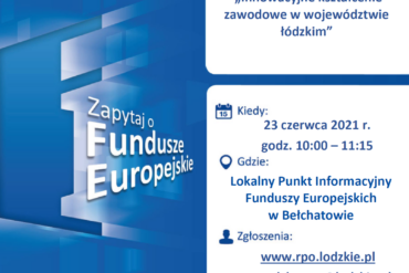 WięcejZapraszamy do udziału w bezpłatnym webinarium pn. „Innowacyjne kształcenie zawodowe w województwie łódzkim”, które odbędzie się w środę 23 czerwca 2021 r. w godz. 10:00 ...