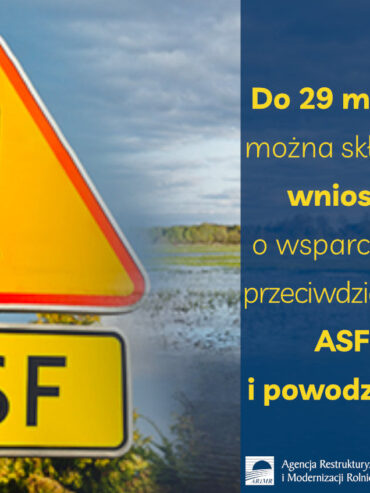 Agencja Restrukturyzacji i Modernizacji Rolnictwa informuje, że do 29 marca wydłużony został termin składania wniosków o wsparcie na przeciwdziałanie ASF i powodziom. Na finansowane z PROW ...