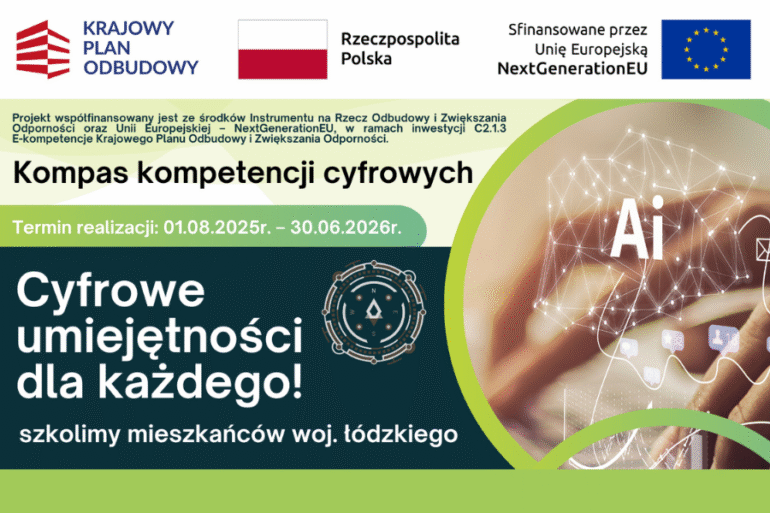 WięcejRozpoczyna się nabór uczestników do projektu „Kompas kompetencji cyfrowych”, realizowanego w ramach Działania C2.1.3 E-kompetencje. Projekt skierowany jest do pełnoletnich mieszkańców województwa łódzkiego, którzy chcą podnieść swoje umiejętności cyfrowe i nauczyć się sprawniej korzystać z komputera oraz Internetu. Kto może wziąć udział?Udział w szkoleniach mogą wziąć osoby, które: mieszkają w województwie łódzkim, są pełnoletnie i posiadają numer PESEL, poprawnie wypełnią formularz zgłoszeniowy, nie uczestniczyły w innych szkoleniach realizowanych w ramach Inwestycji KPO C2.1.3. Podczas rekrutacji każdy ...